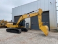 The machine is equipped with hydraulic hammer lines, extra hydraulics, and a heavy-duty reach boom, making it suitable for a wide range of construction and excavation applications.