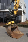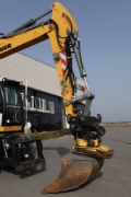 ● Engcon EC214 head on a double quick-coupler with a grab