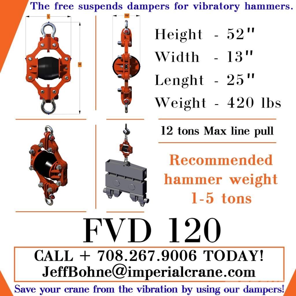 Vibratory Hammers for all aspects of pile driving extraction. Our attachments don't have cables that fray and wear out. Absorbs 80% of shock load allowing cable cranes, hydraulic cranes and excavators to perform better and greatly increase the life and wear on your machine! In stock- please call or email for more information.