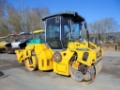 ROPS-cabine with air-conditioning, radio, driver's seat slidable and pivoting. Vibration front and rear switchable, automatic vibration, 2 vibration modes, split drums 1.500 mm. Edge cutting and pressing device, precision gravel spreader. Drive front and rear, articulated steering, crab steer, rear drum steerable, water sprinkler system. Traffic and working lights. CE and EPA compliant. 4-cyl. Cummins diesel turbocharged, 74 kW - 101 hp. Operating weight approx. 9.100 kg.