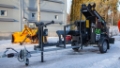 Firewood processor, petrol engine (Honda 13 hp), 2–8 tn adjustable splitting force, trailer with brakes, log-lifter and separate splitting function, splitting blade 2/4.