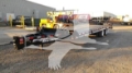 Description: Length 34' Width 102" Main Deck Length 21' Flat Deck Main Deck Height 34" Weight 8,850 lbs +/- 3% Flat Body Bulkhead 8" Steel, Full Width Floor Apitong Outside - DSS Pine Center D-Rings Seven (7) Pair Beavertail 6' Long, 8 Degree Load Angle Ramps 20 Ton Ramps, 6' Long, Angle Iron Ramps Side Rail Steel Toolbox Drawbar Storage Area, Lockable Rear Lights (2) Stop/Tail, (3) Clearance Suspension # of Axles 2 Suspension Type Spring Ride Suspension Brand Hutchens H-9700 3-Leaf Suspension Setting 49" Tire Size 215/75R17.5 Wheels Steel HP UnderFrame Pintle Hook Steel, Adjustable from 20.5" to 34" Landing Gear Single Leg with Crank Paint Black Weight Ratings 20 Ton Comments 4S/2M ABS Spring Brakes on All Axles SALE PRICE INCLUDES FET