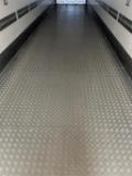 Jerndørkplade 400mm ind fra bagenden og derefter alu dørk plader som er svejset i samlingerne - 7100 kg tryk fra gaffeltruck - 1 binderække i 750mm højde